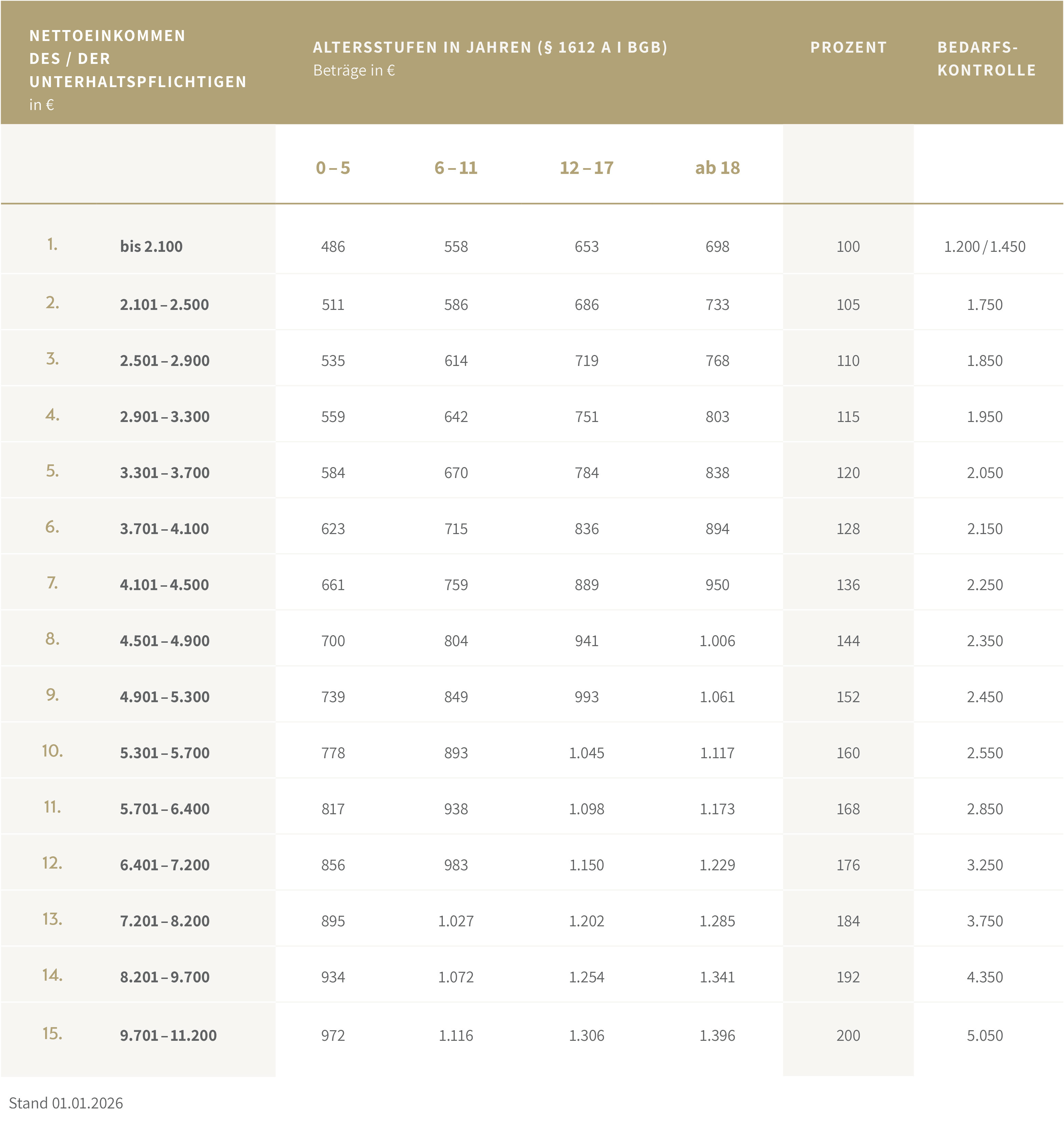 Daher gibt es bei der Düsseldorfer Tabelle im Anhang noch eine Tabelle mit dem sogenannten Zahlbetrag.
